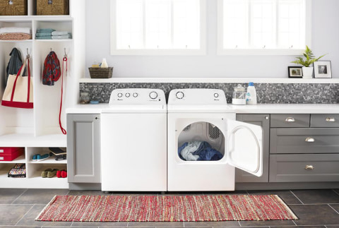 This 6.5 cu. ft. Amana Top Load Electric Dryer can help prevent damage from overdrying with Automatic Dryness Control. Plus. you get 11 Dry Cycles and the Wrinkle Prevent Option to help keep creases and crinkles from settling in.