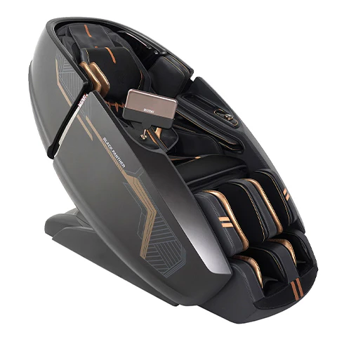 Unlike massage chairs with a cumbersome legrest unit that feels detached from the rest of the chair. the Supreme Hybrid's form factor wraps all parts into a unified. pleasing rounded body.Space-saving round shape
