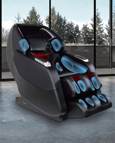 The Hubble Plus features an easy access armrest controller. two wireless phone chargers. a phone holder. and 60 airbags. The wall hugger design makes it so the Hubble Plus only needs to be placed 4” away from the wall. The 4D massage rollers mimic the human hand to give a massage that varies in speed. pressure. and direction. The sleek design also makes the Hubble Plus fit right in with your décor.
