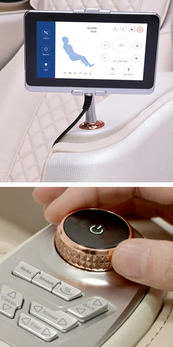 On the armrest of the Kumo. there is a master control that allows you to conveniently control the intensity of your massage program without disrupting your massage experience.