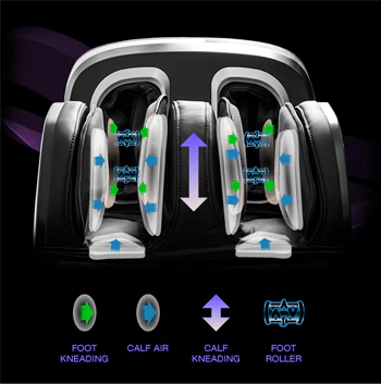 On the upper section of the leg rest. the air massagers will rotate in a circular motion to add a new dimension to the calf massage. For the foot portion. additional components have been added to stretch and massage the bridge and heel of the foot. The experience is like no other.