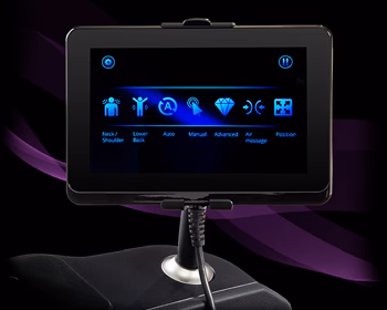 The Osaki OS-4D Pro Maestro LE's remote is upgraded to Touch Screen Remote Tablet. The remote controller is upgraded to a larger screen for the user's convenience to manage the massage chair. It has an easy view screen displaying the function the chair has activated. It also has a magnetic holder that fixes the remote into place. On the remote it allows you to select the massage type. intensity. speed. and location. You can also operate the functions independently in the Manual Mode.