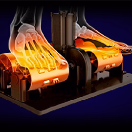 The ottoman will scan the legs to ensure the optimal leg length for the user's height. The foot component extends and retracts within 8.7” automatically. Simply apply pressure with the feet to indicated to the leg scanner that length is at the desired and comfortable position for better massage. Remote also allows for one to auto adjust the leg component to either extend or retract to the user's customizable needs. Additionally. the footrest is covered over toes which makes the foot warmer during the massage. Foot warming stimulates an improvement of blood circulation.